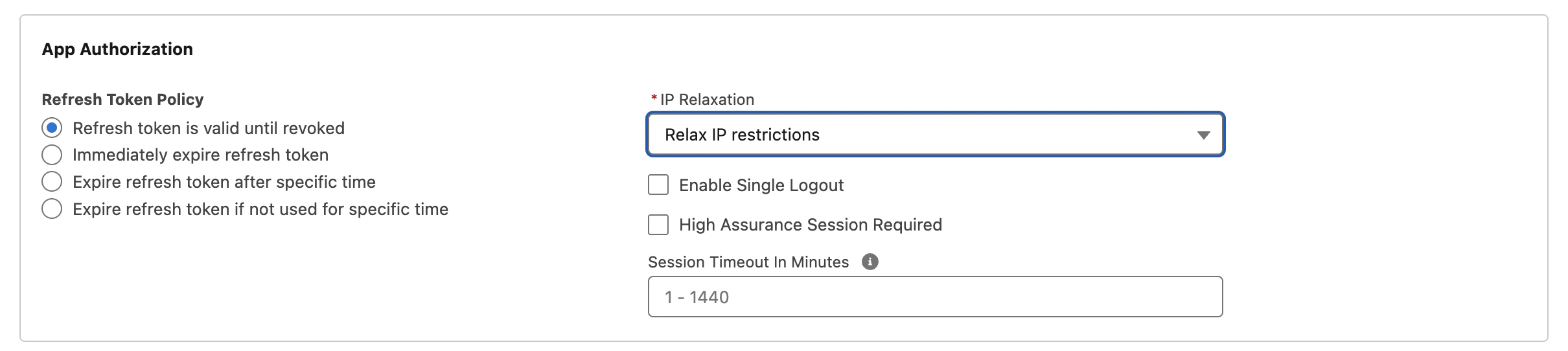 - In “Refresh Token Policy”, select “Refresh token is valid until revoked”